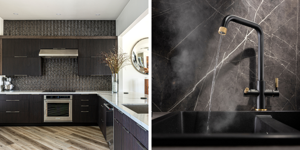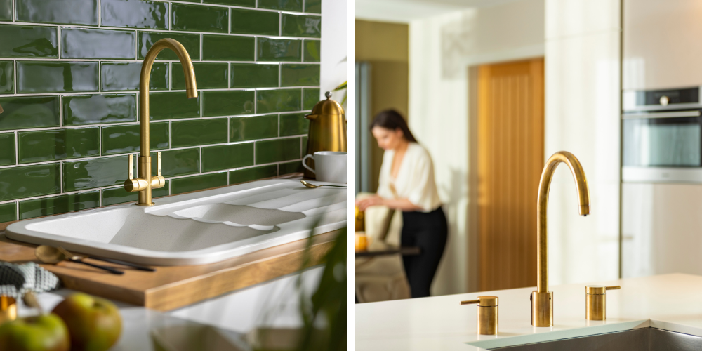 Synonymous with luxury, gold is the colour of wealth and success. And we say gold, but any form of gold or brass finish evokes that idea of indulgence and opulence. Which is why this is such a popular trend in kitchens. These finishes are used in kitchen taps to offer a luxurious look and to create a focal point and will usually be paired up with handles of similar finishes to create a stunning masterpiece. These finishes really stand out when paired against a kitchen backdrop of strong blues and greens.  And remember, gold is a colour that is linked to winners!