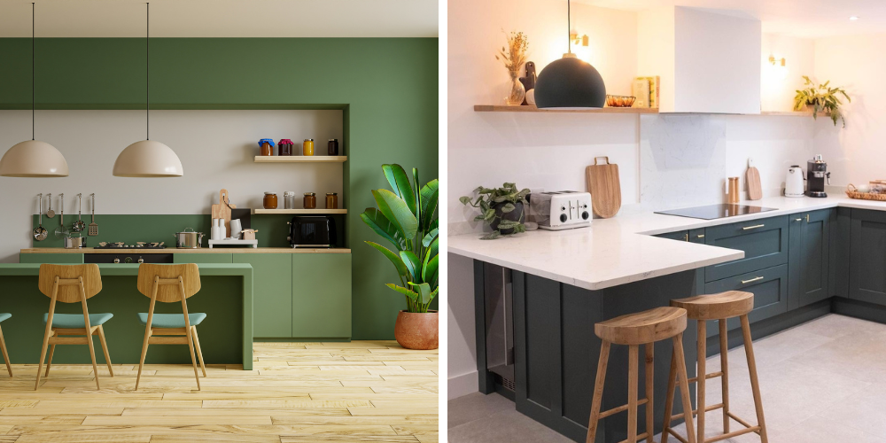 One of the most popular of colour choices for kitchens currently. We have seen darker shades of racing greens around for a couple of years now, but we are starting to see a shift towards softer shades like Sage and Olive, which we happen to love by the way. Green symbolises nature and tranquillity, so this hue is perfect for creating a peaceful space to relax and unwind in after a busy day. It can also help bring the outside in and vice versa, think connecting the greenery of the garden to the busiest hub of the home.