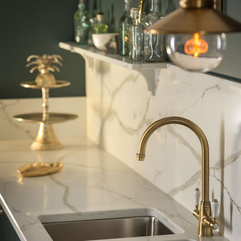 It’s not the only way to match your kitchen hardware to your accessories. You could take an approach that considers the overall style of your kitchen. Brass taps and cupboard handles are a popular choice when you’re after a timeless, traditional feel to your kitchen. But that doesn’t mean you need to start adding lots of brassware to your kitchen for a cohesive theme. Instead you could couple it with other timeless accessories such as white crockery and wooden shelves and chopping boards.