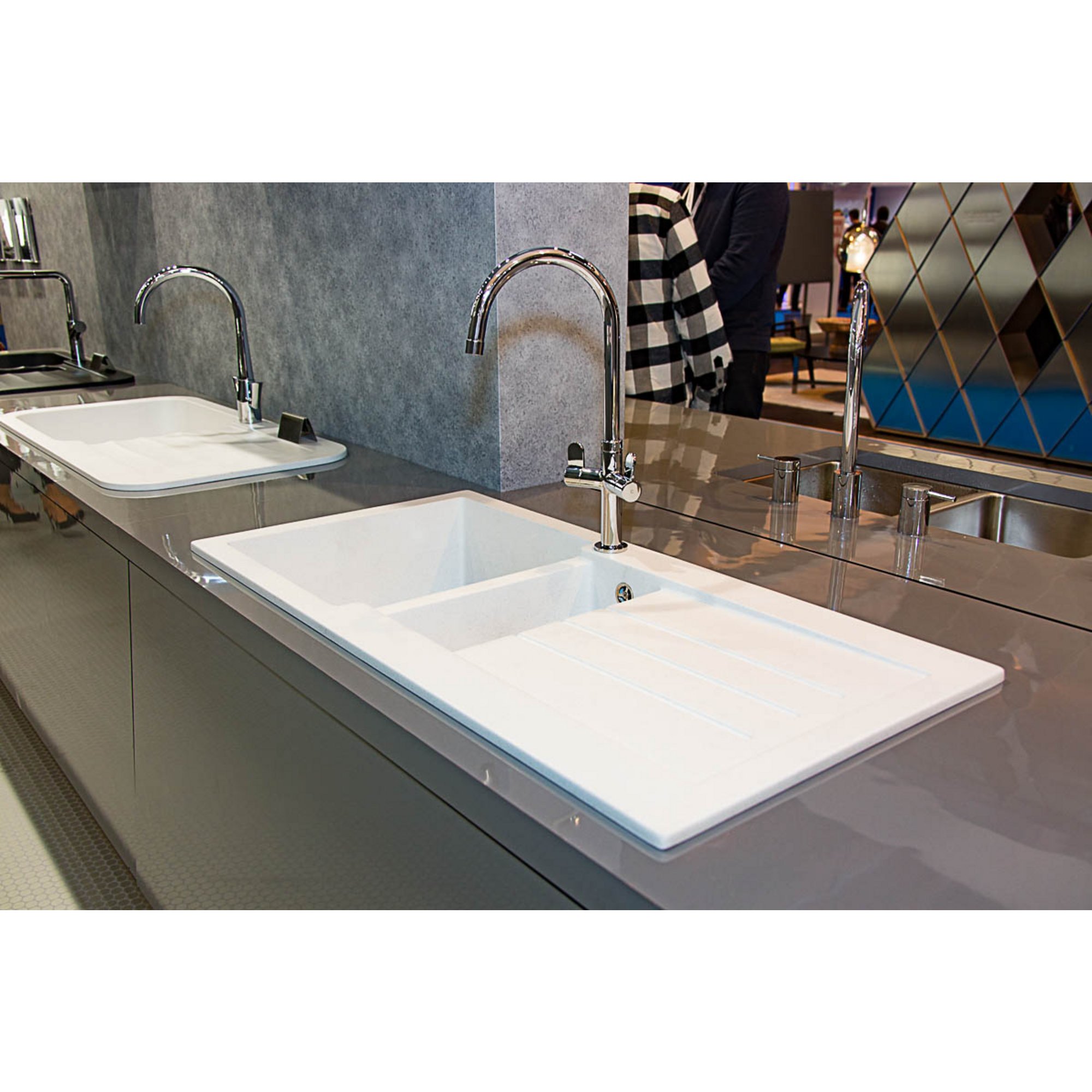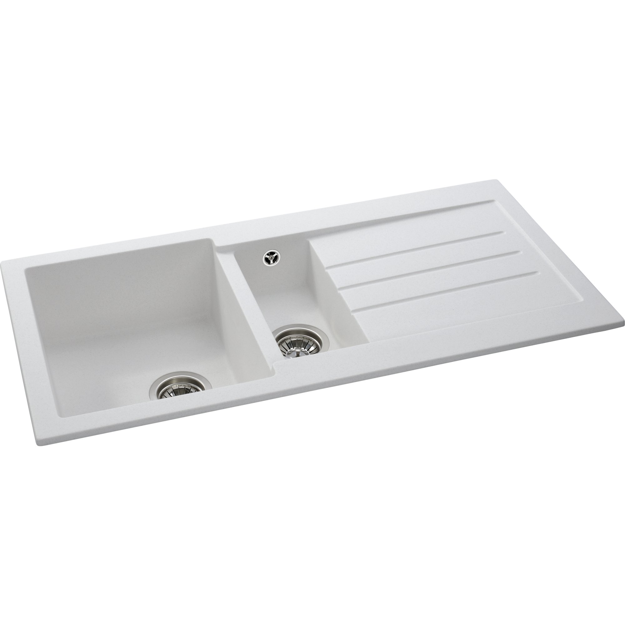 Clean, Crisp and Contemporary The Abode Xcite Single & Drainer is where sharp design meets everyday practicality. This sink's strong geometric lines and defined drainer pattern make it a striking focal point in any kitchen, while its advanced SioForm quartz construction ensures durability and ease of maintenance. Resistant to stains, corrosion, impacts, and high heat, the Xcite sink is designed to withstand the rigors of daily life while maintaining its sleek, modern appearance. The Xcite features a versatile 1.5 bowl design, providing extra space for food preparation or handling smaller tasks. It comes complete with stainless-steel wastes featuring an easy-empty fold-back basket, and all necessary pipework for seamless installation. Available in Black Metallic and Grey Metallic Granite finishes, this fully reversible sink offers maximum flexibility, fitting perfectly into any kitchen layout.